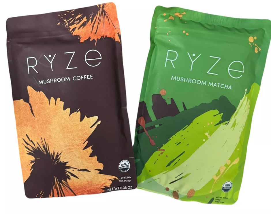 | 2 Pack Combo 2024 New RYZE Mushroom Coffee & RYZE Mushroom Matcha With 3 original RYZE HAND MADE ACACIA wooden spoon 100% Authentic New 30 SERVINGS FREE SHIPPING